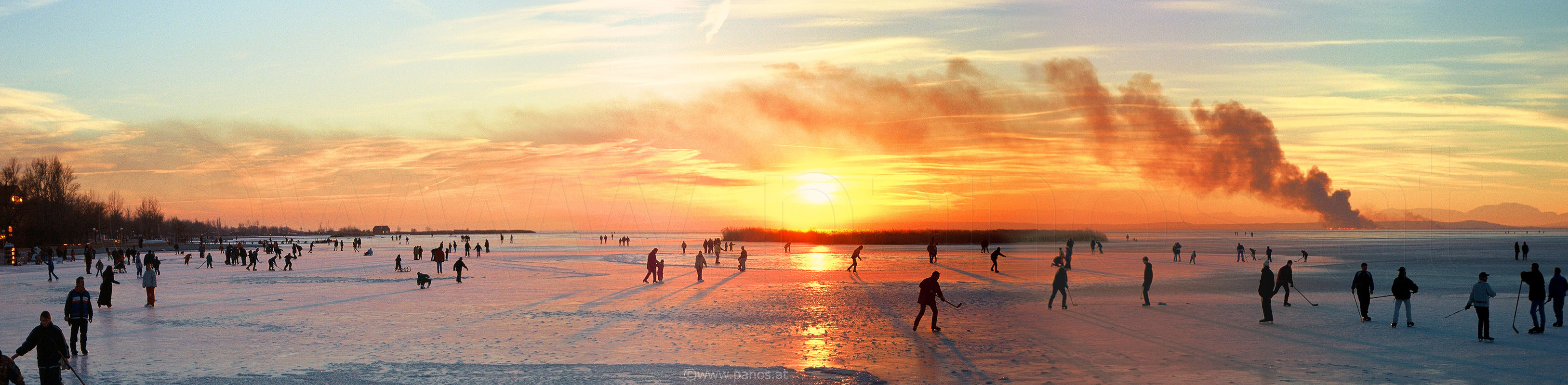 Neusiedler See, Podersdorf, Sonnenuntergang, brennendes Schilf, 6. 1. 2001
