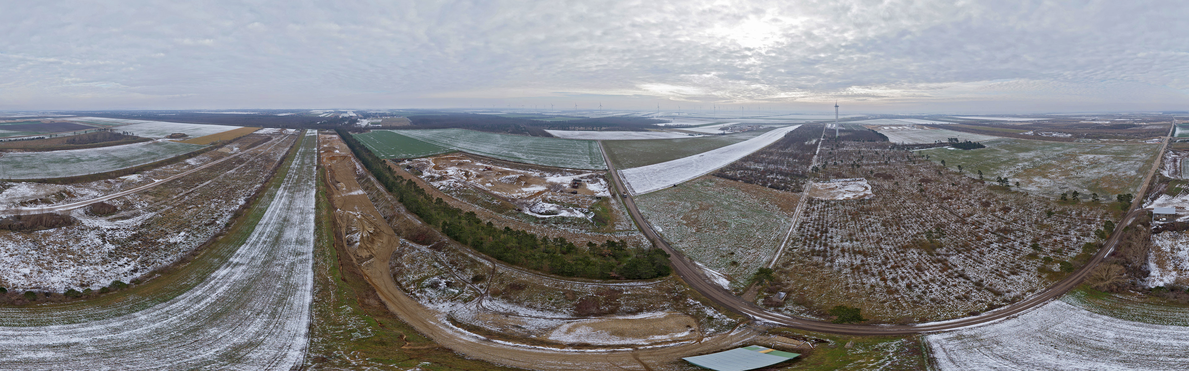 über der Trasse der zukünftigen S8, südwestlich des alten Flugfeldes, 15. 2. 2018 interaktive Darstellung |