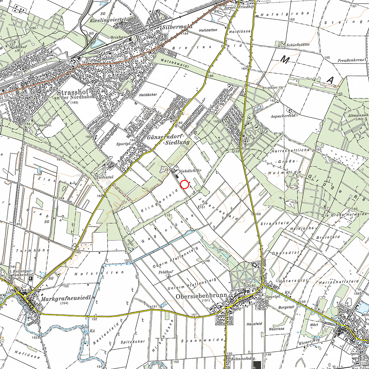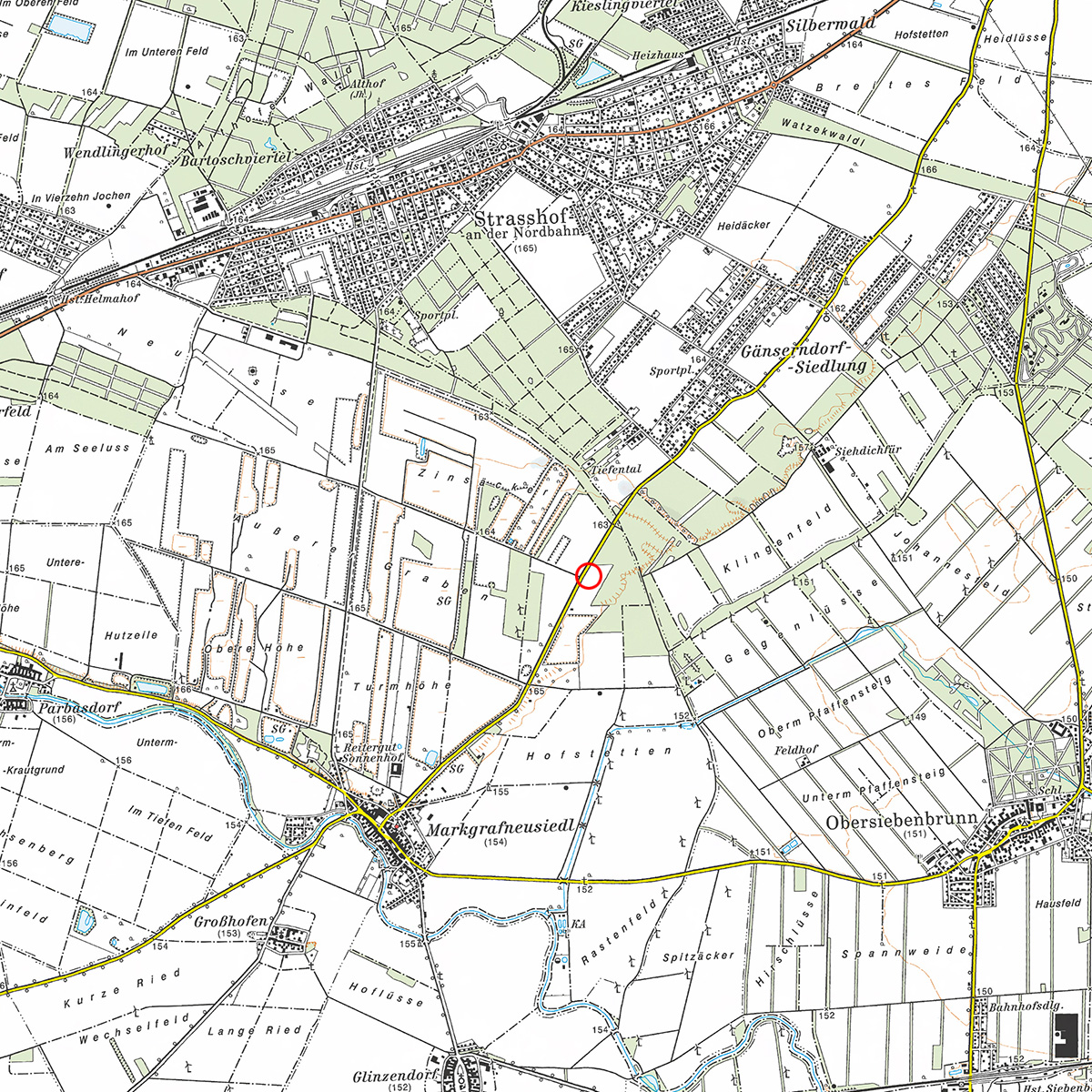 hier bei Groß-Enzersdorf wird der Lobautunnel an die Oberfläche kommen, 26. 5. 2018 interaktive Darstellung |