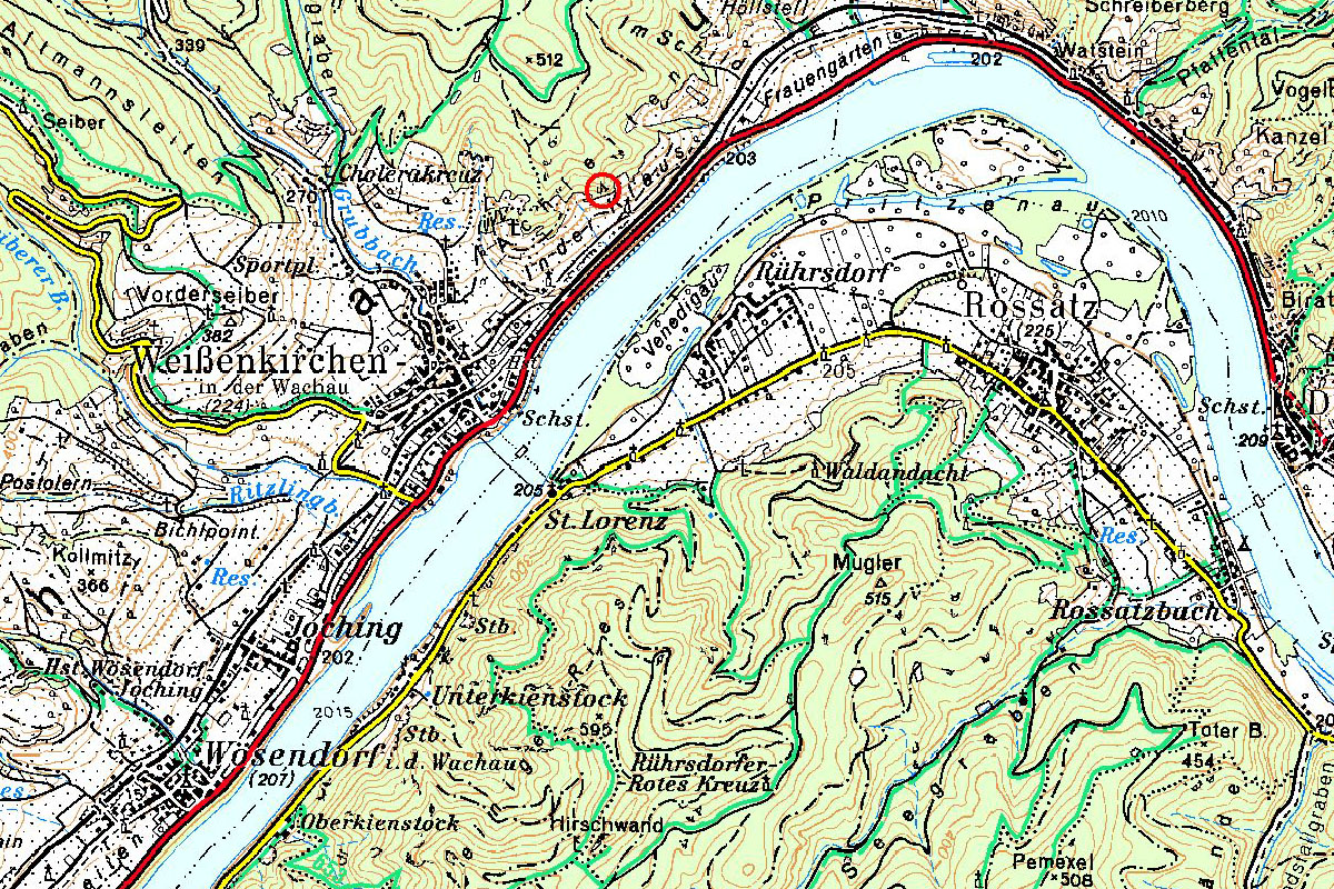 elsvorsprung. Man sieht Dürnstein, Göttweig, Rossatz, Rührsdorf, Weissenkirchen.