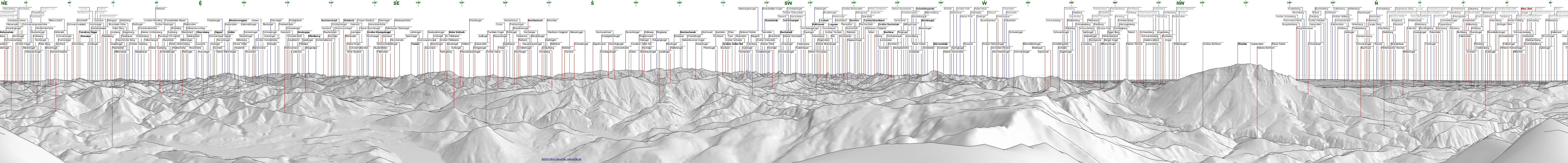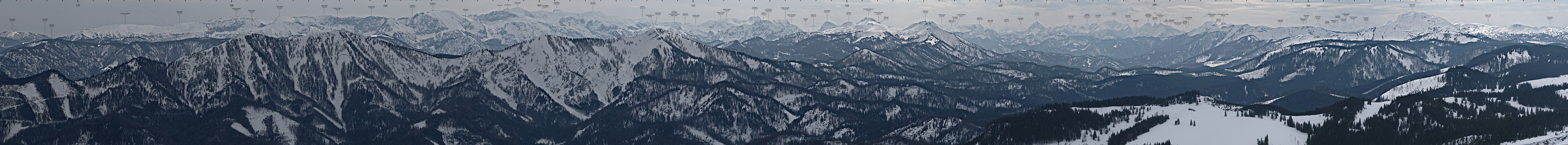 Blick vom Gipfel der Gemeindealpe Richtung SW, 21. 3. 2006 Großformat-Foto: 68105 x 6277 Pixel = 427 Megapixel, Fotogröße 17,3 x 1,6 m bei 100ppi Foto in voller Auflösung