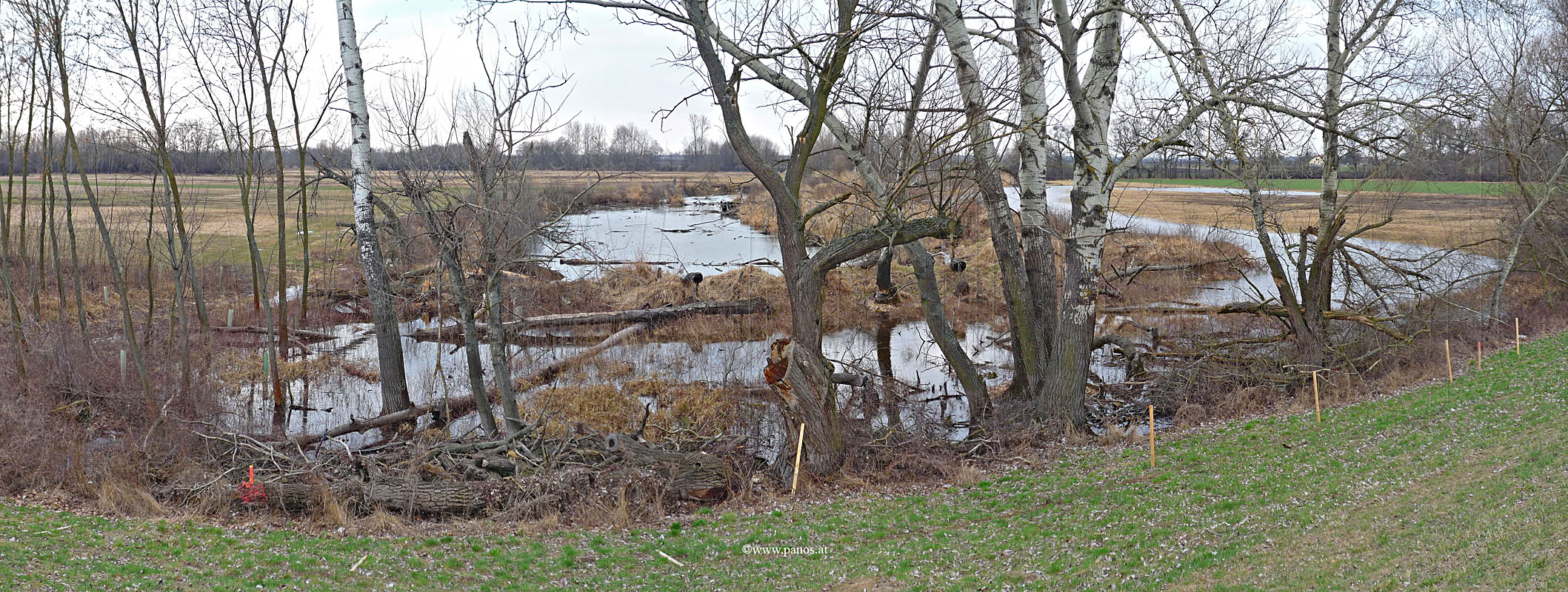 Blick vom Marchdamm bei Baumgarten ins Überschwemmungsgebiet der March, 8. 3. 2009