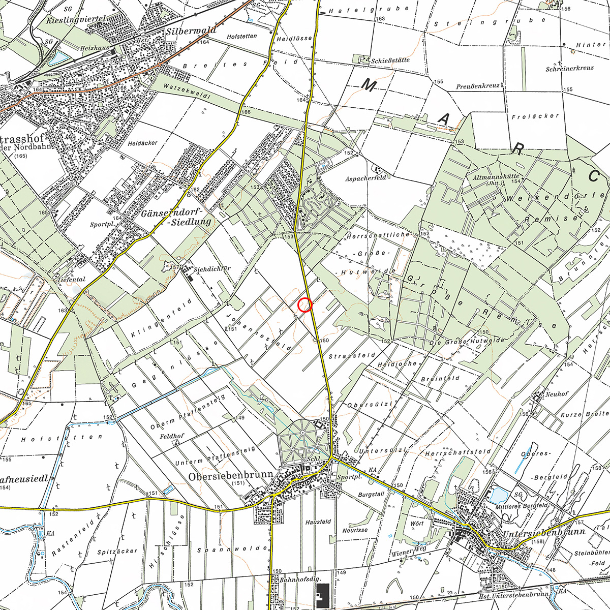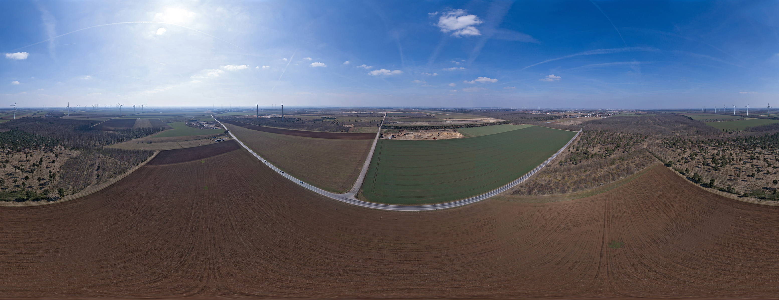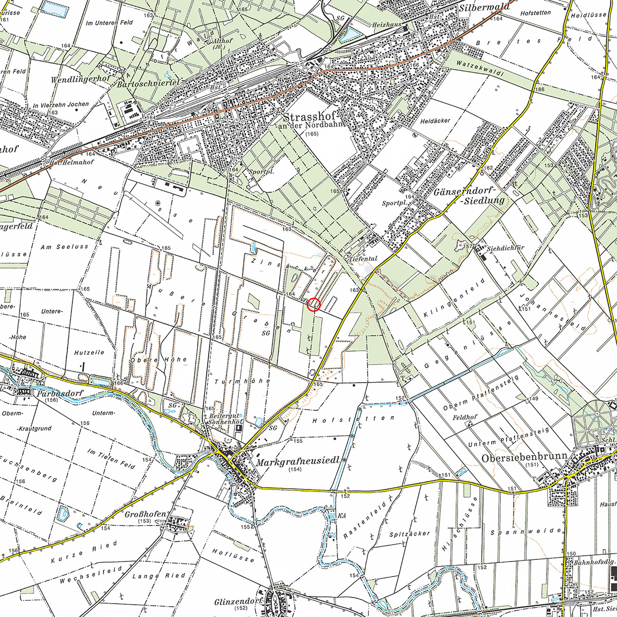 über der Trasse der zukünftigen S8 bei der Kreuzung mit der Straße zwischen Markgrafneusiedl und Gänserndorf (L11), 24. 3. 2018 interaktive Darstellung |