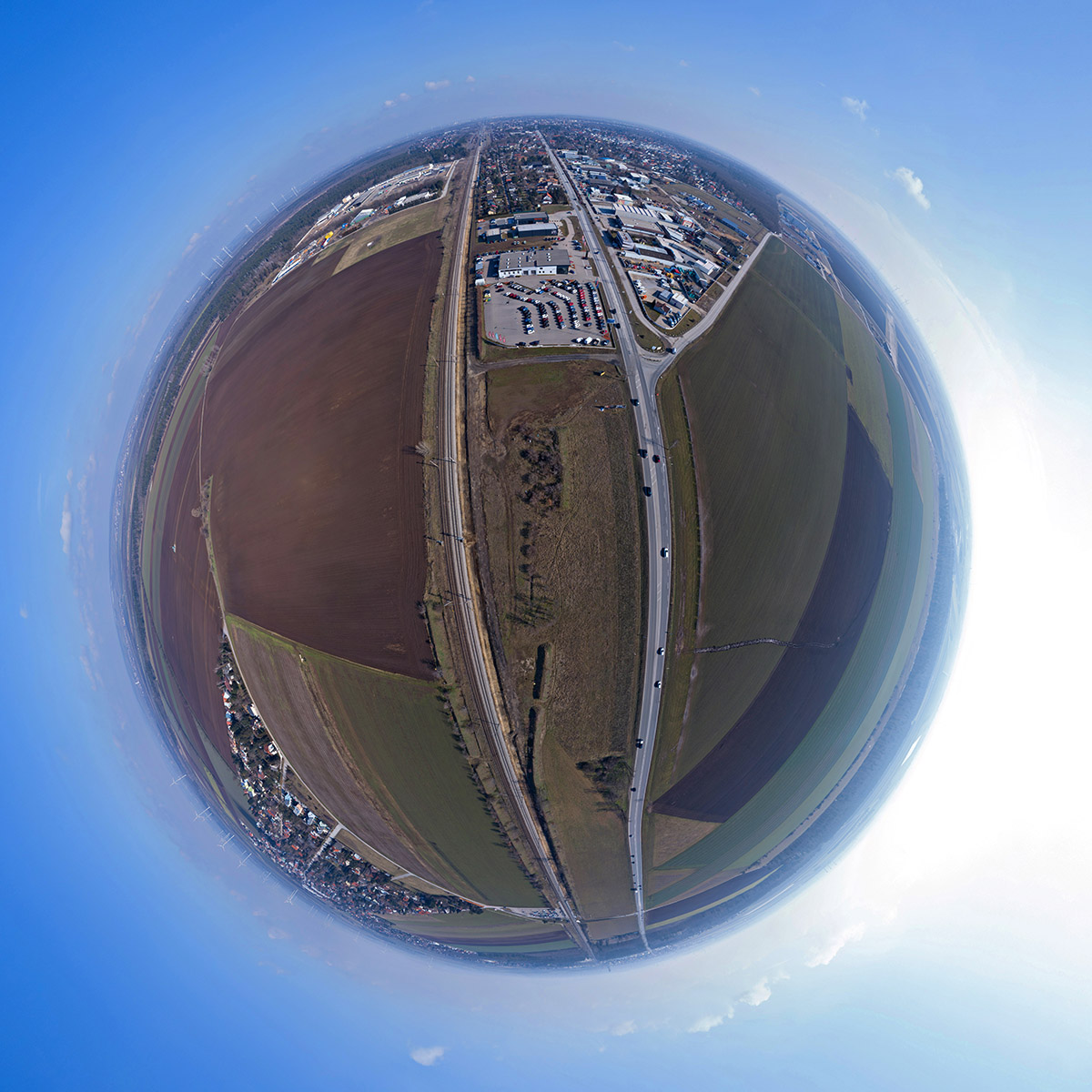 über der Trasse der zukünftigen S8 bei Groß-Enzersdorf, 26. 5. 2018 interaktive Darstellung |
