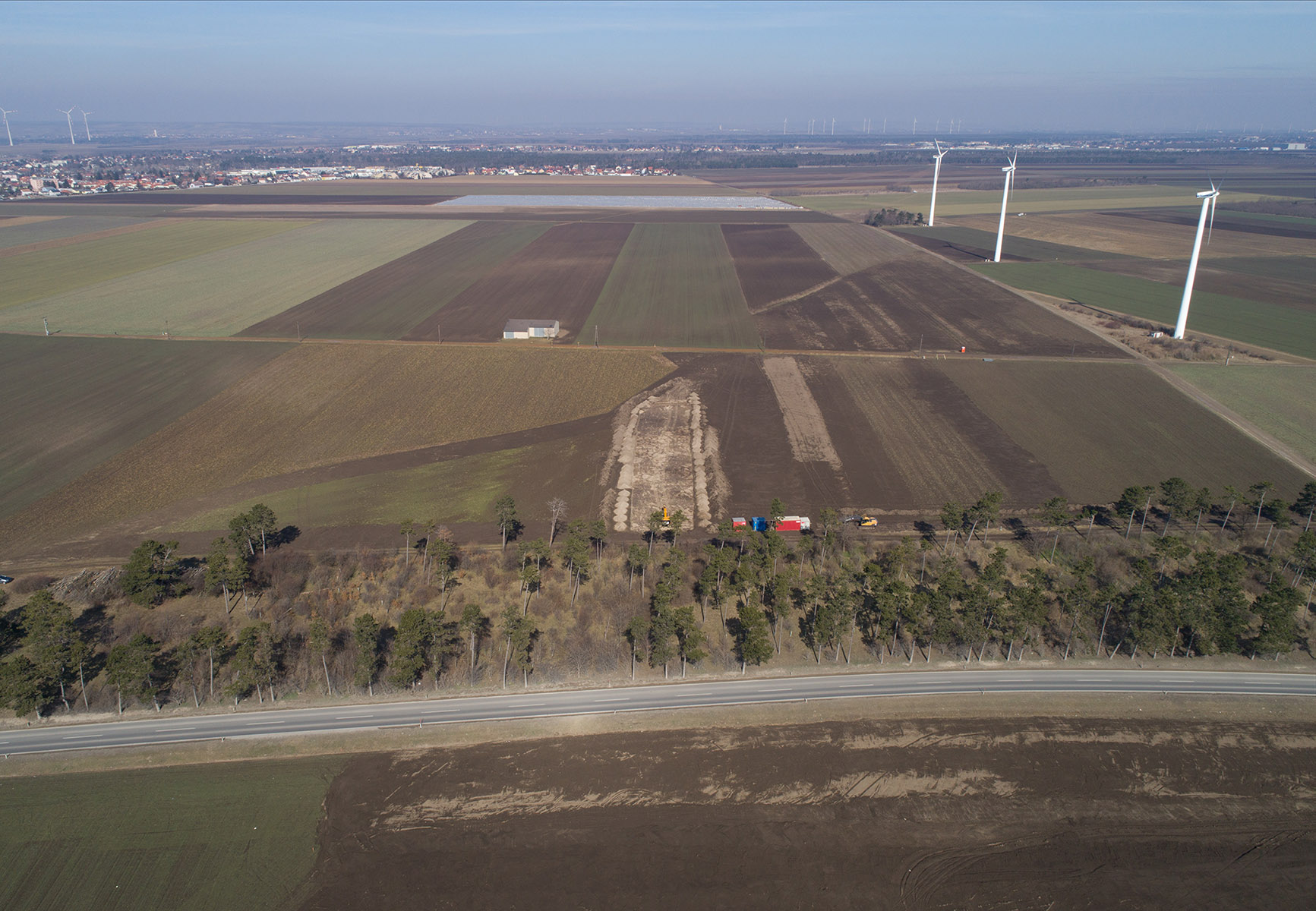 über der Trasse der zukünftigen S8, westlich der Straße zwischen Markgrafneusiedl und Gänserndorf (L11), 22. 1. 2018 interaktive Darstellung |
