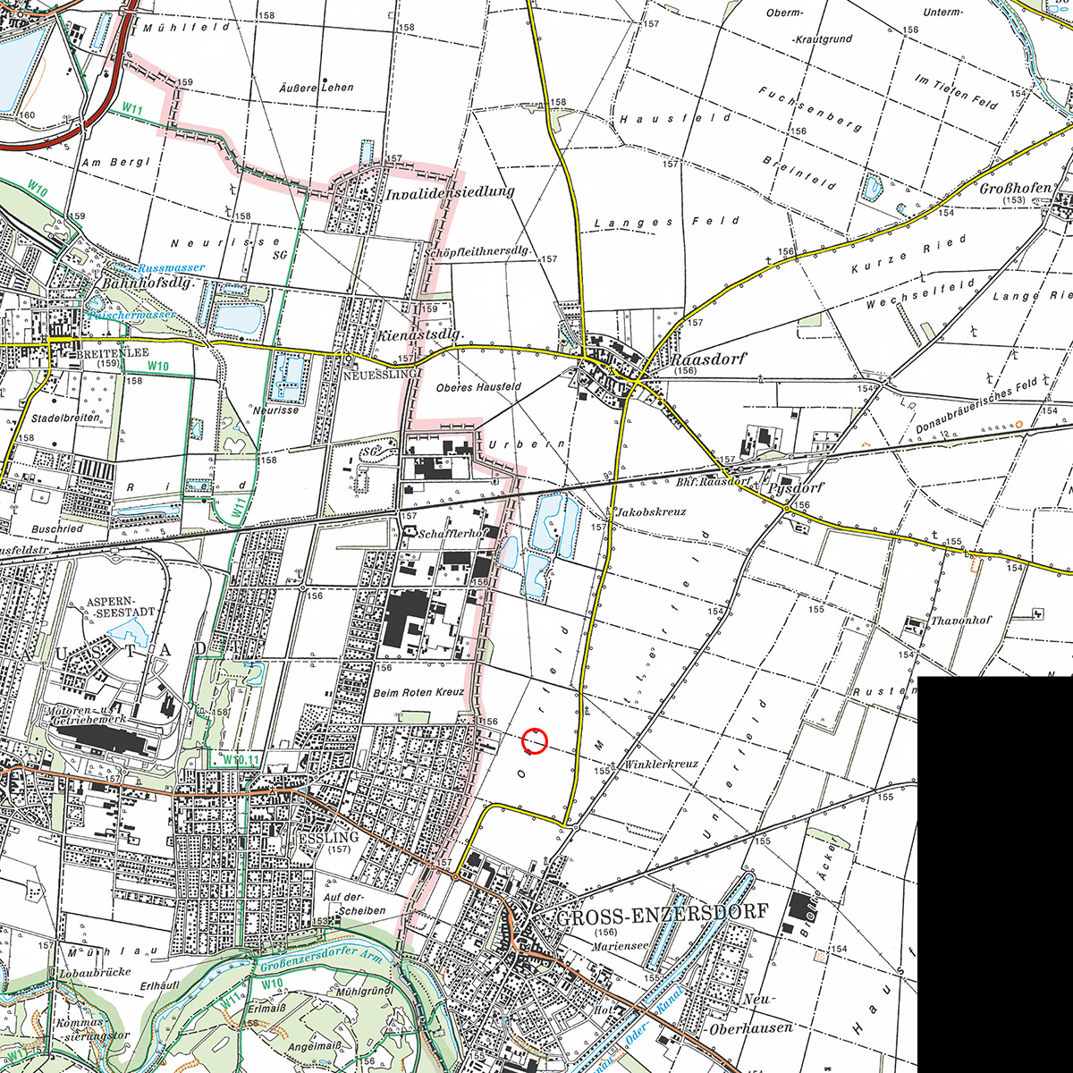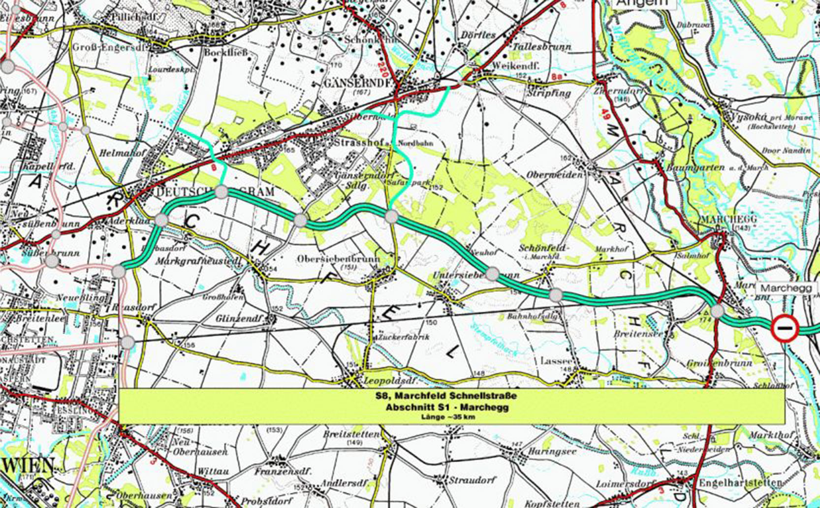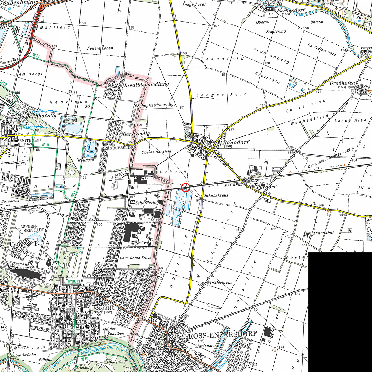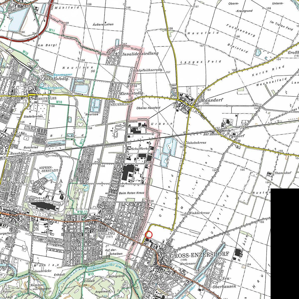 hier bei Groß-Enzersdorf wird der Lobautunnel an die Oberfläche kommen, 26. 5. 2018 interaktive Darstellung |
