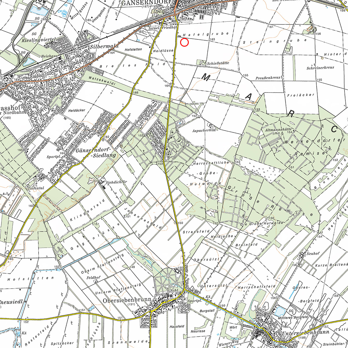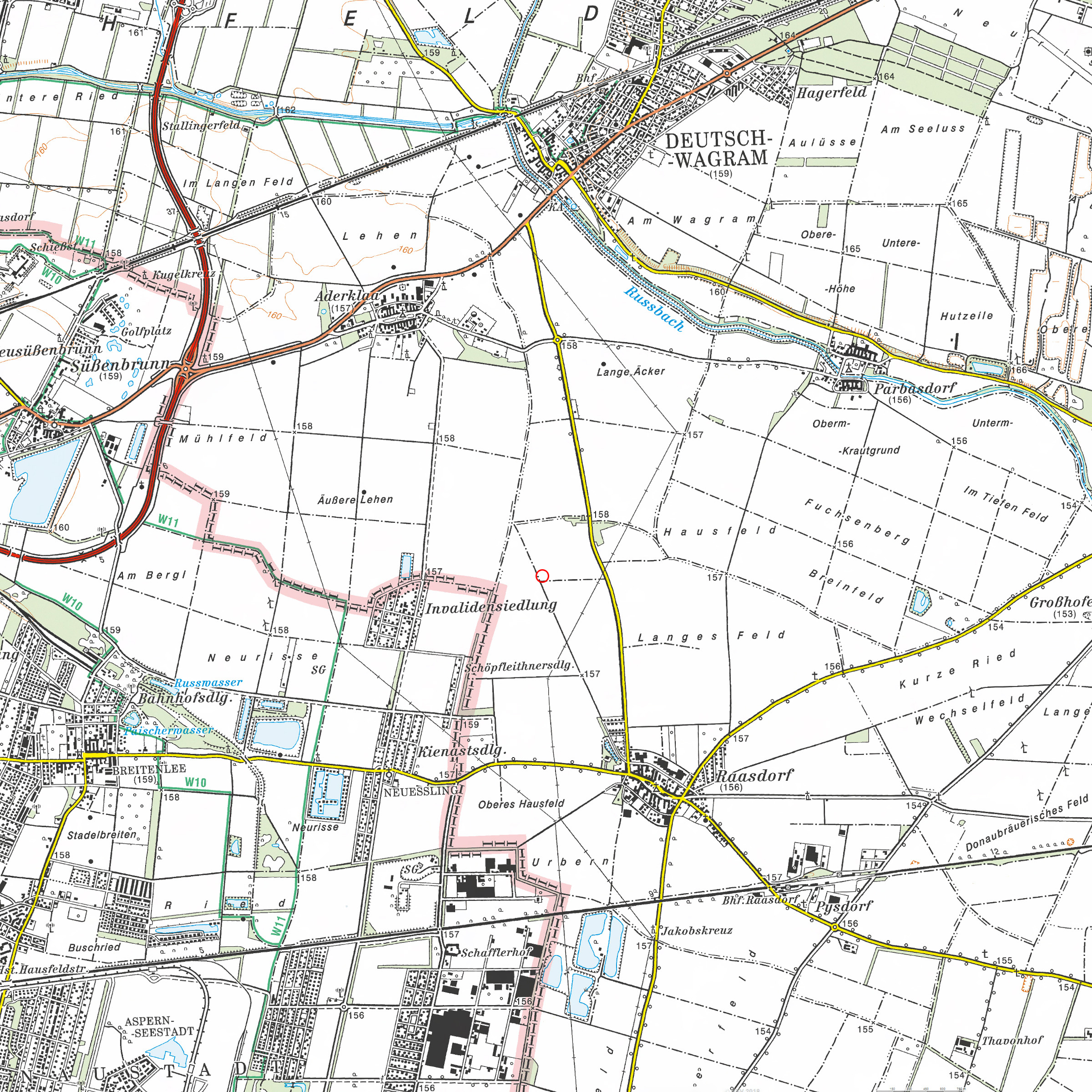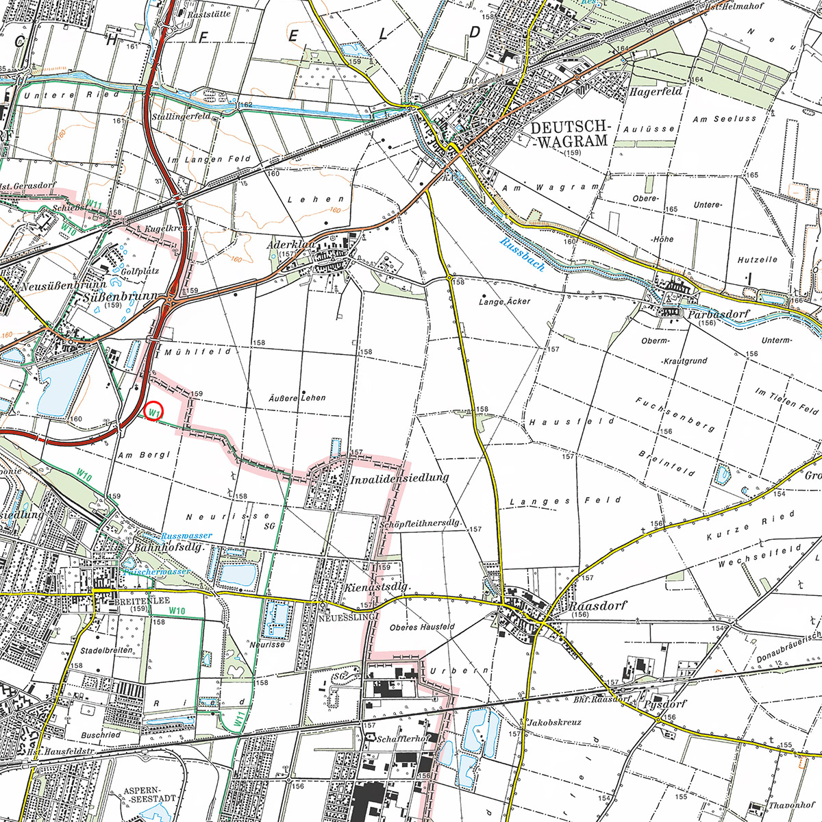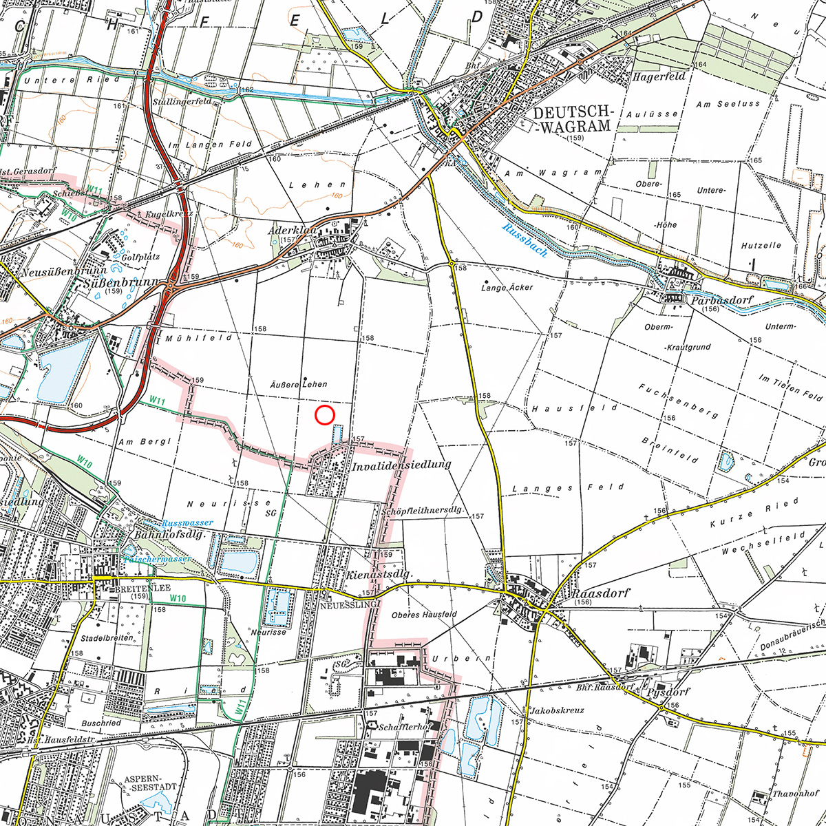 hier bei Groß-Enzersdorf wird der Lobautunnel an die Oberfläche kommen, 26. 5. 2018 interaktive Darstellung |