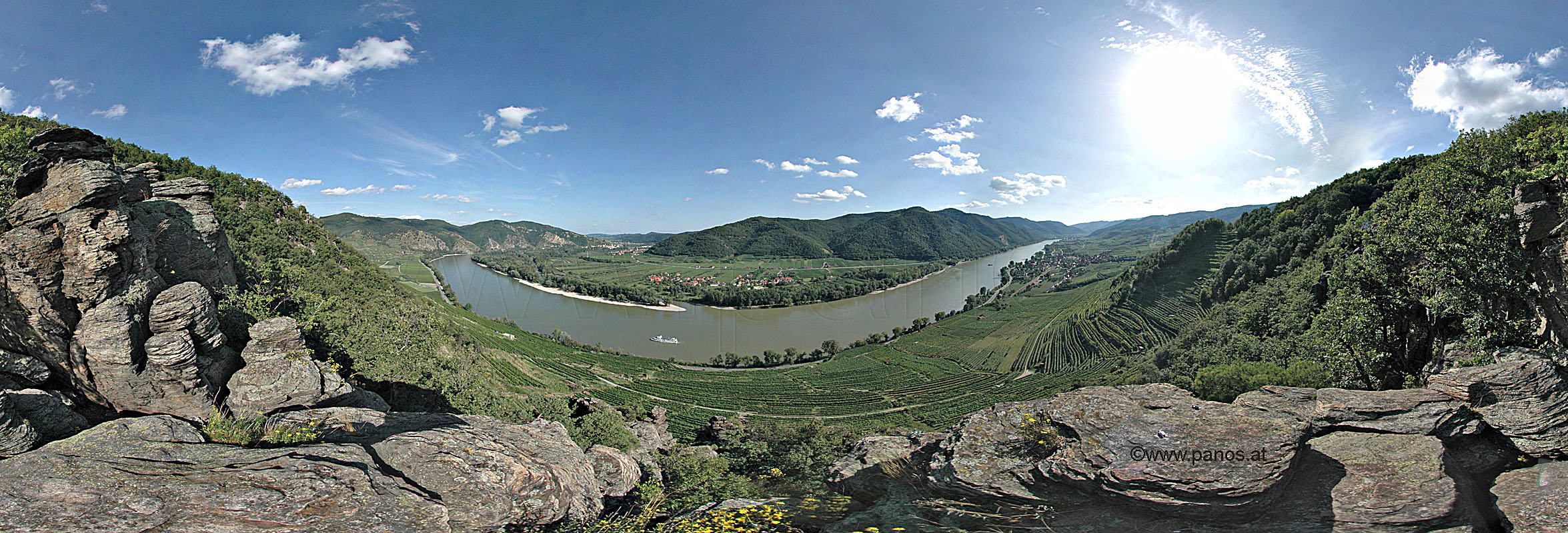 elsvorsprung. Man sieht Dürnstein, Göttweig, Rossatz, Rührsdorf, Weissenkirchen.