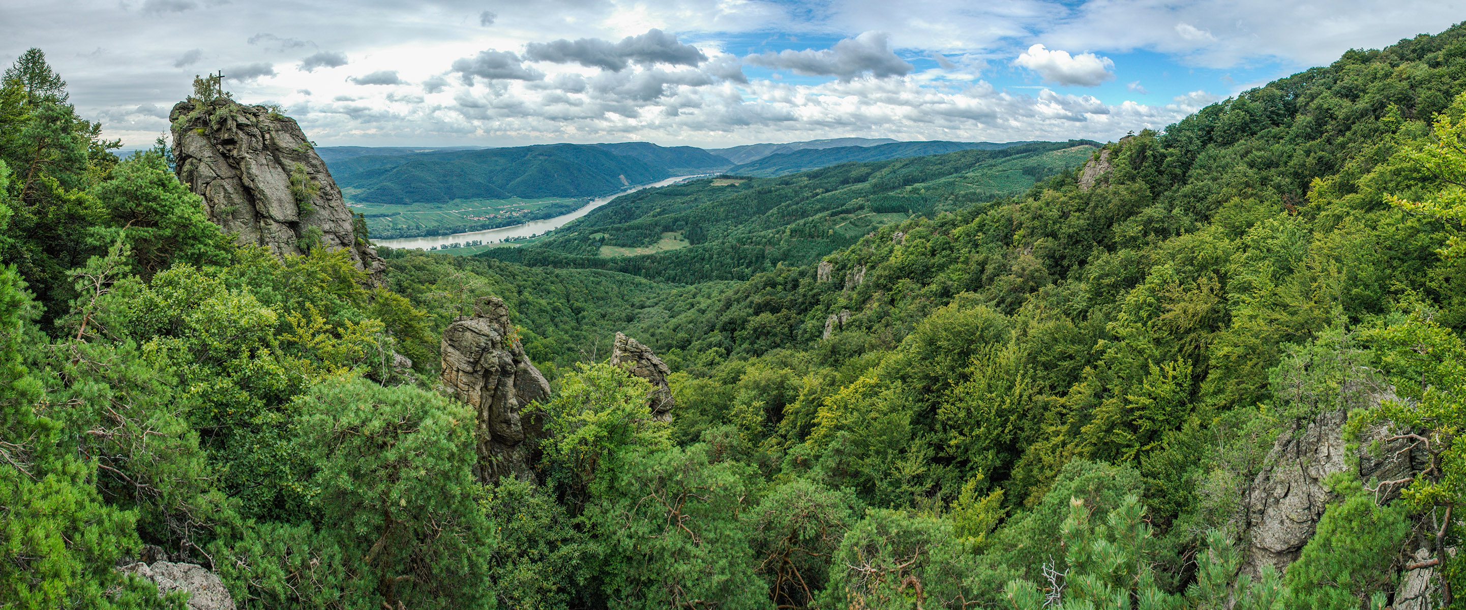 Blick von den Falkenwänden Richtung Dürnstein und Stift Göttweig