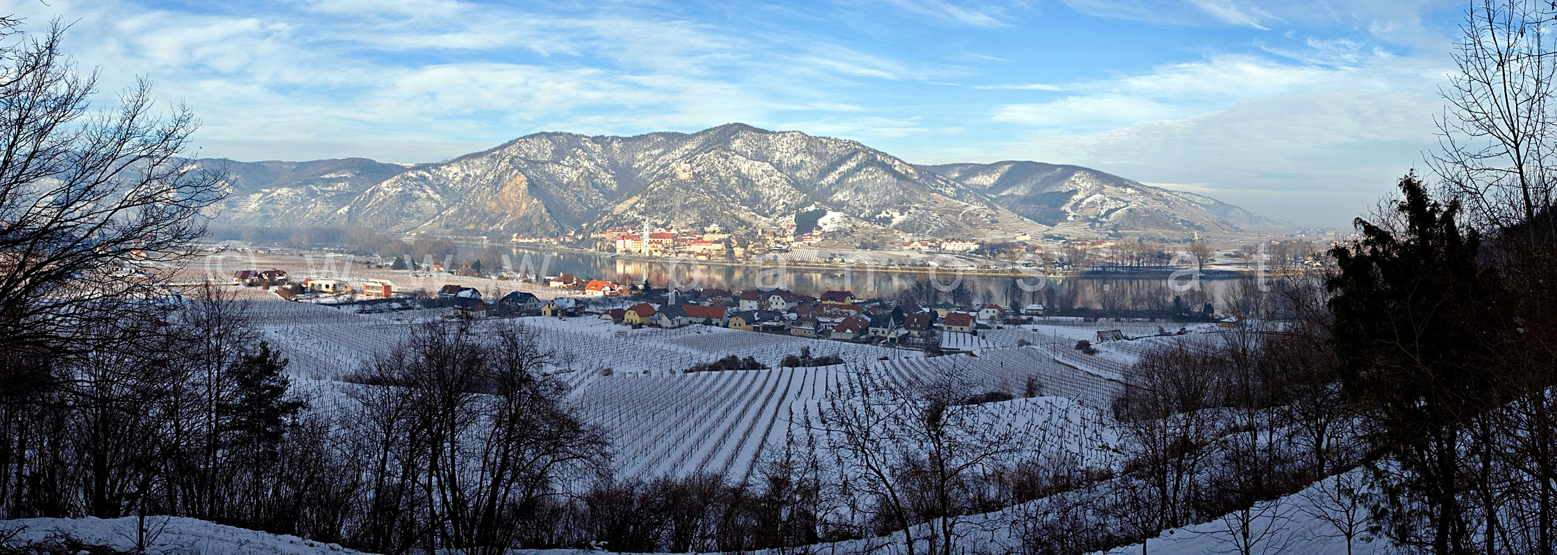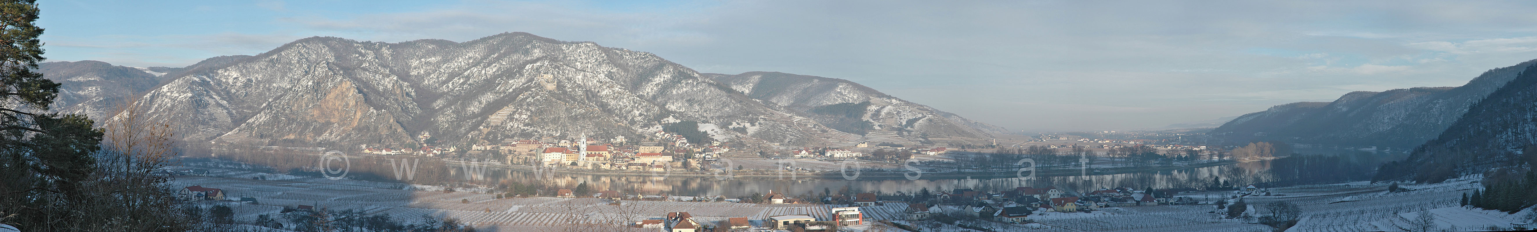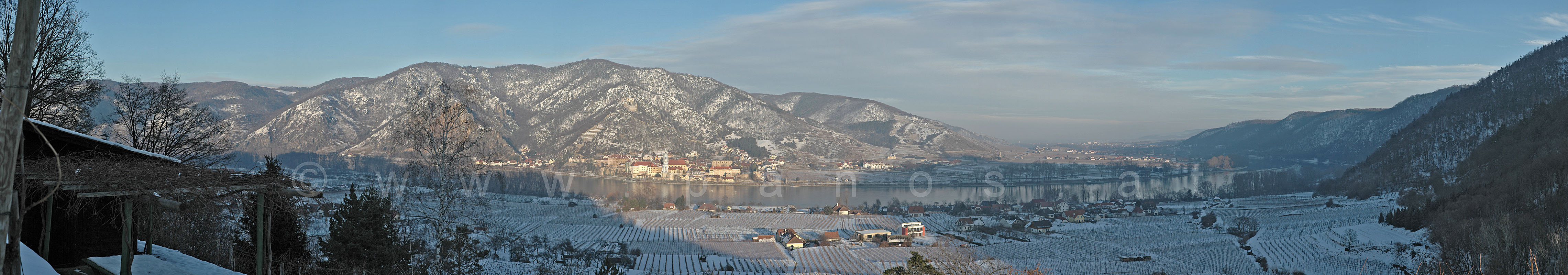 Dürnstein von Rossatzbach Weinberg aus gesehen, 20. 1. 2006