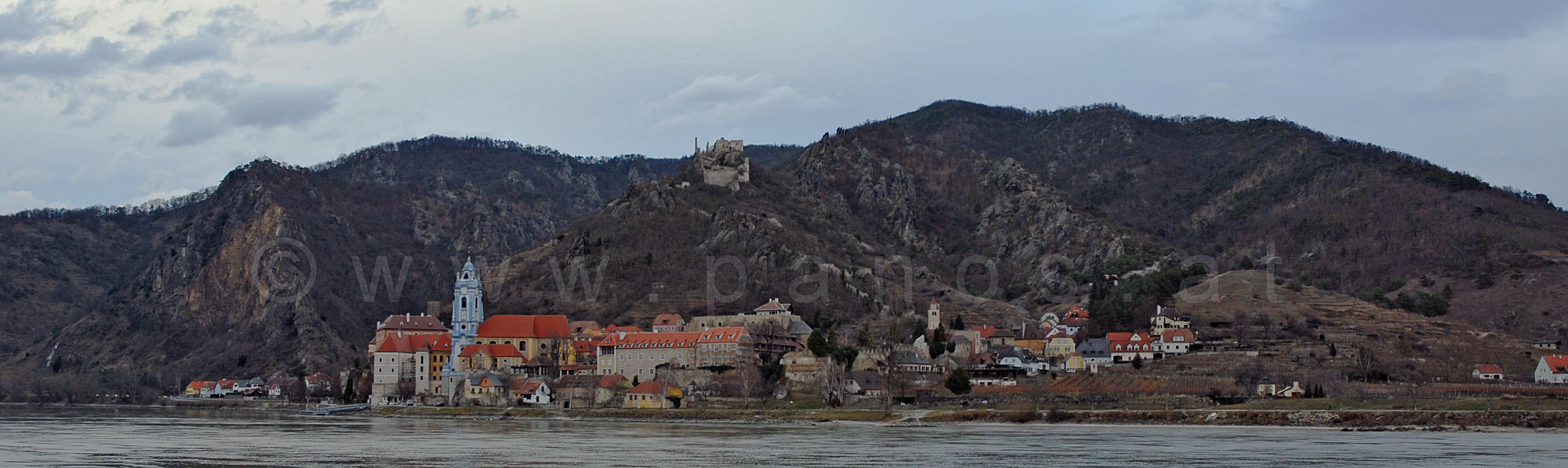 Dürnstein von Rossatzbach Strom-km 2009,2 aus gesehen (Probefoto), 11. 1. 2007