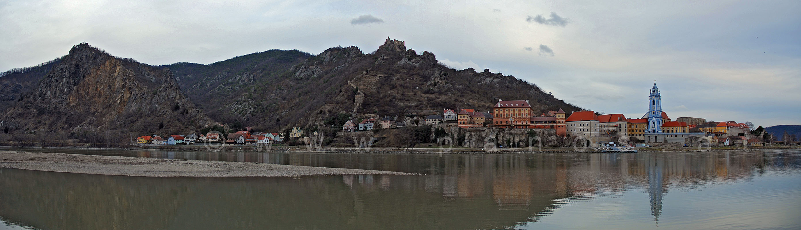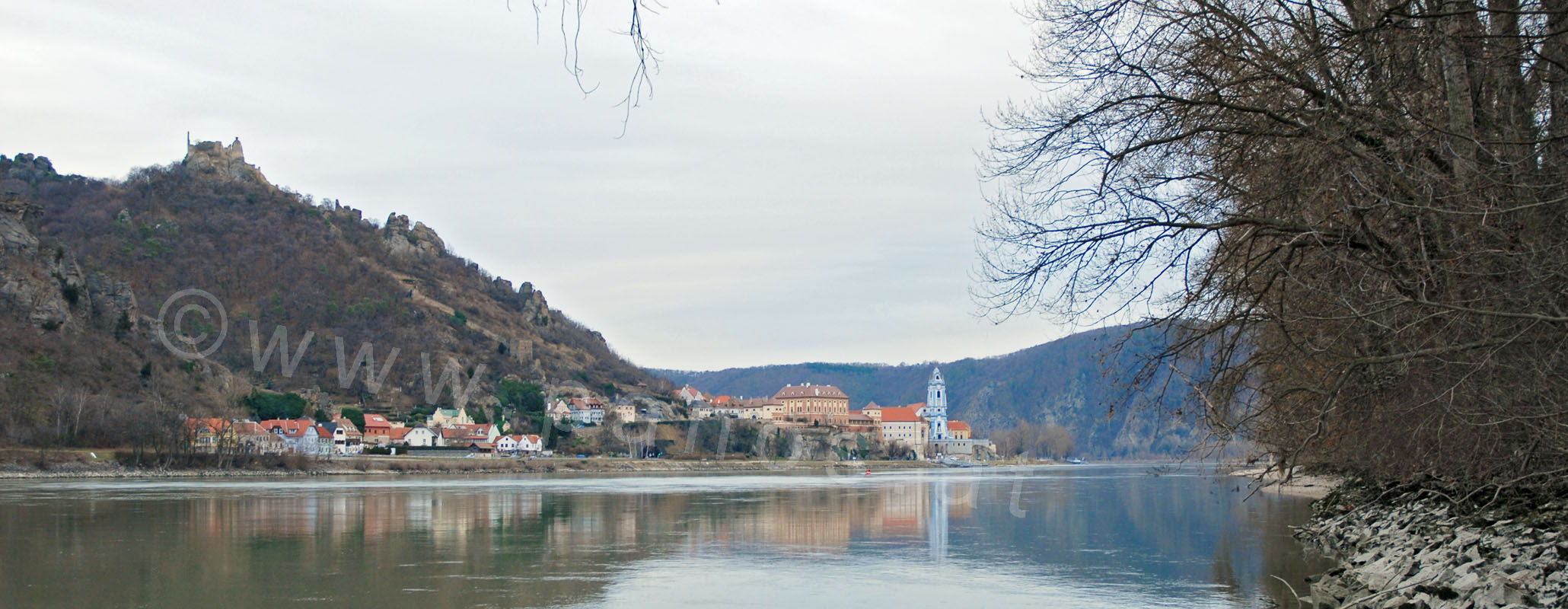 Dürnstein von Rossatzbach Yachthafen aus gesehen (Probefoto), 12. 1. 2007