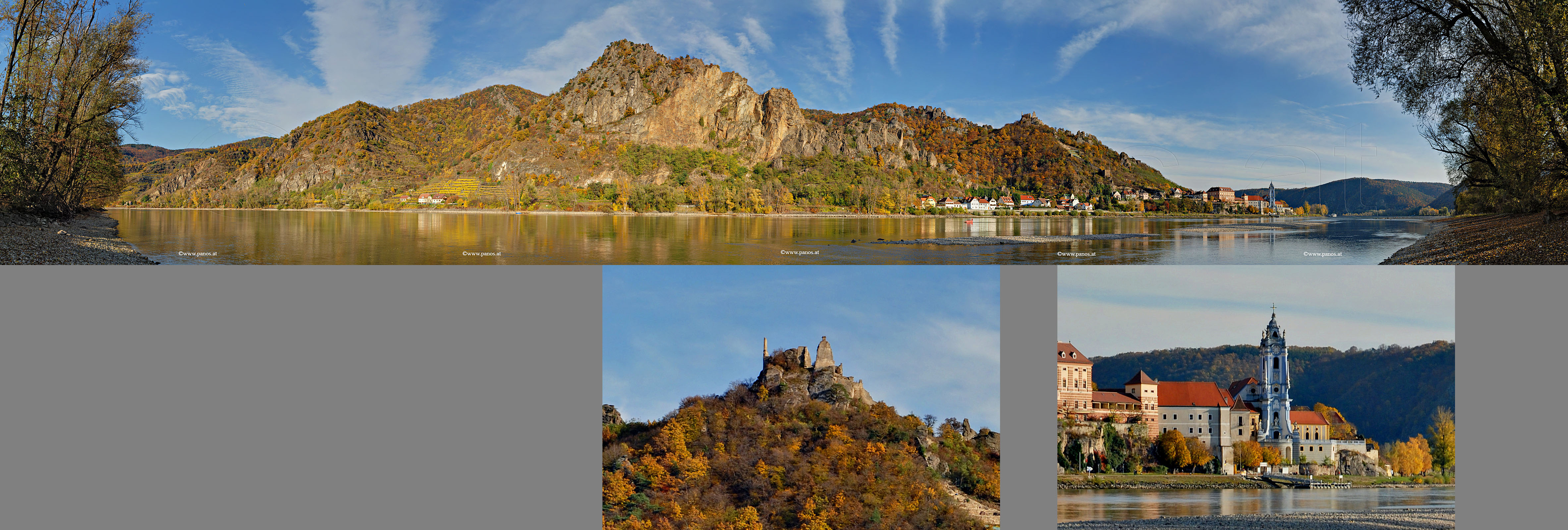 Die Biratalwand und Dürnstein vom gegenüberliegenden Donauufer aus gesehen, 30. 10. 2008