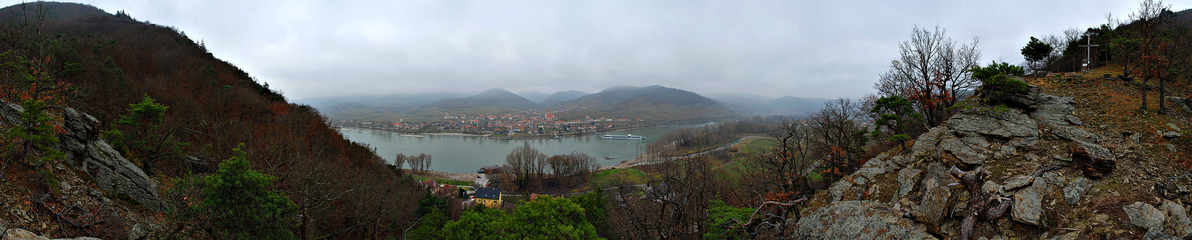 360°-Blick auf Weissenkirchen vom Friedenskreuz (Probefoto), 6. 12. 2006
