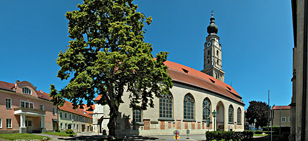 ![]() Braunau am Inn, Kirche, 17. 7. 2004 5658 x 2586 = 15 MegaPixel, Fotogröße 144 x 68 cm bei 100ppi |