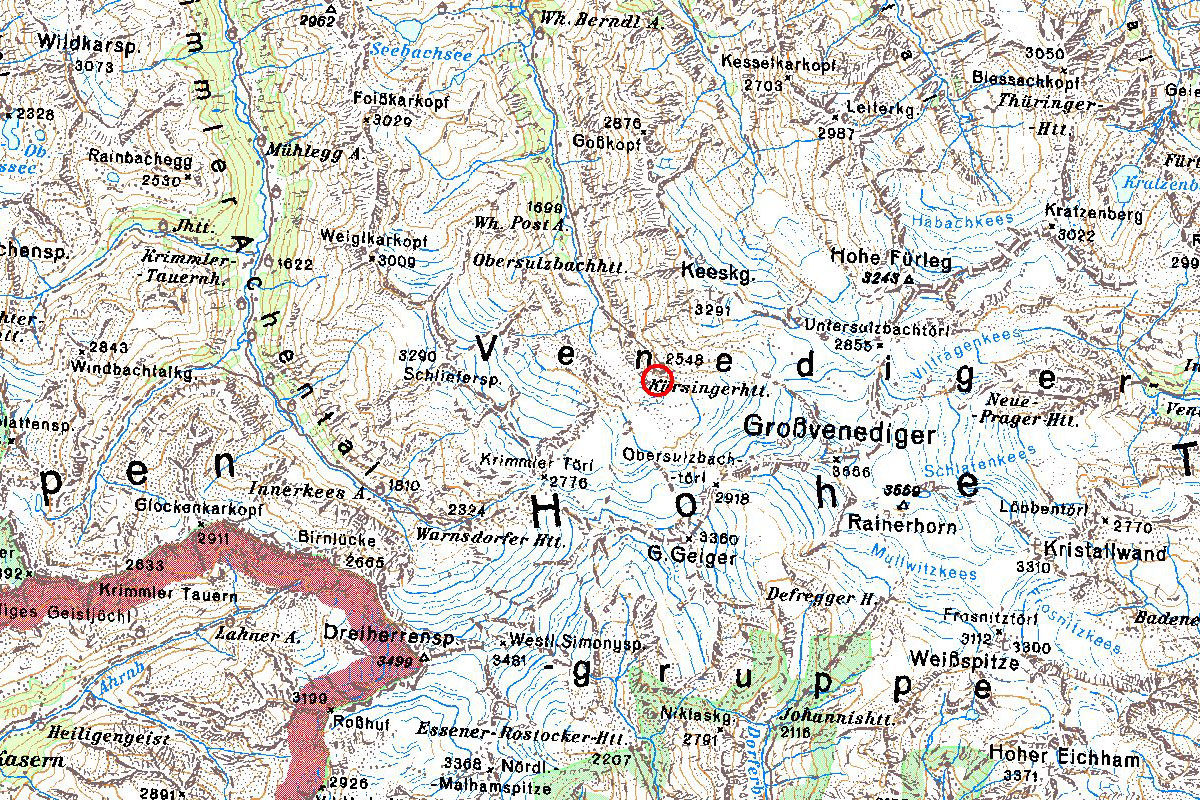 Blick von der Kürsinger Hütte auf den Großvenediger und den Großen Geiger, 12. 8. 2005 |