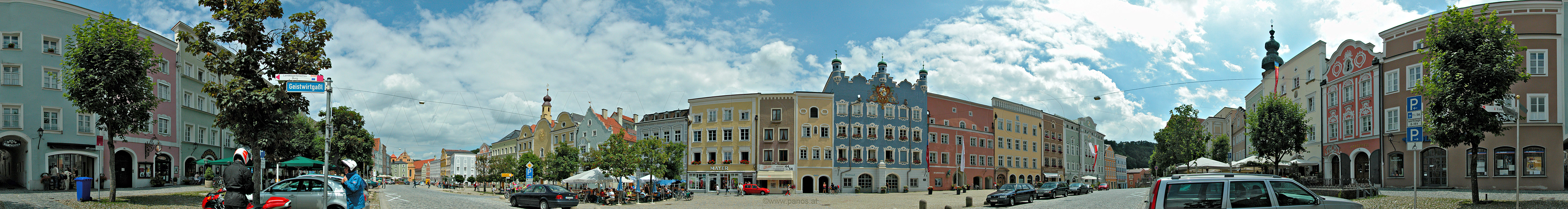 Burghausen, Stadtplatz 16. 7. 2004 19071 x 2545 = 49 MegaPixel, Fotogröße 484 x 65 cm bei 100ppi interaktives Bild mit Quicktime oder Flash